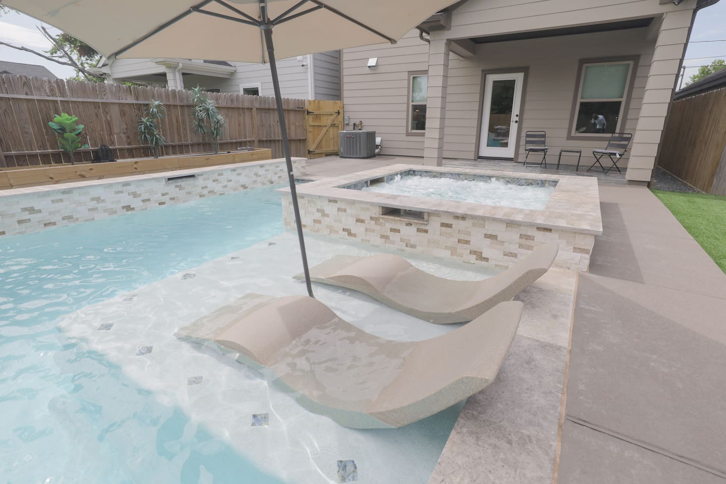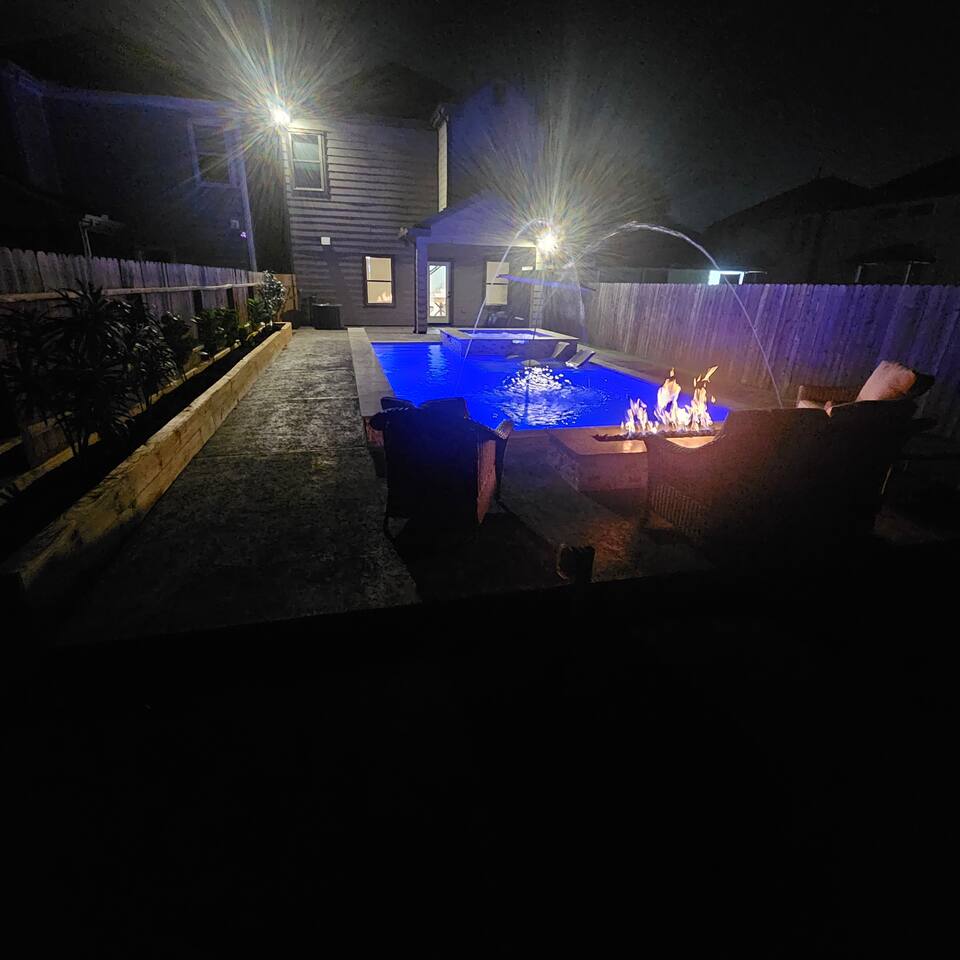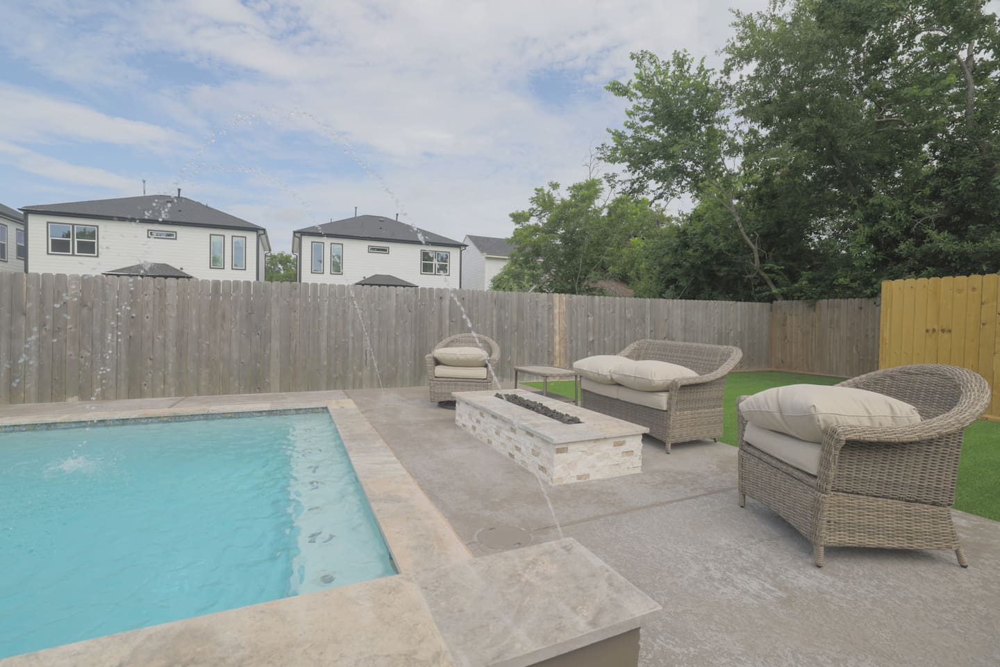 Bedrooms: Primary Suite: King Bed + Ensuite Bathroom (Separate Tub and Shower) Bedroom 2: Queen Bed Bedroom 3: Queen Bed Bedroom 4: Queen Bed + Ensuite Bathroom Kitchen & Living Room Fully equipped kitchen, open concept living area, and indoor dining for 10-ideal for gathering and relaxing. The Pool: Private Luxury pool surrounded by sun deck, hot tub, loungers. Water falls and ambient lighting make nighttime dips a staycation vibe. You are distance to: • NRG Stadium - 5.2 miles • TDECU Stadium - 4.7 miles • Museum of Fine Arts, Houston - 5.9 miles • Houston Museum of Natural Science - 5.9 miles • Children’s Museum Houston - 6 miles • Houston Zoo - 6.1 miles • Shell Energy Stadium - 7.9 miles • Rice Stadium - 8 miles • Toyota Center - 8.4 miles • George R. Brown Convention Center - 8.9 miles • Daikin Park (formerly Minute Maid Park) - 9.4 miles • Downtown Aquarium - 9.9 miles • The Galleria Mall - 12.3 miles • The Music Box Theater - 21.3 miles • NASA Space Center Houston - 25.4 miles AIRPORTS: • William P. Hobby Airport - 6.6 miles • George Bush Intercontinental Airport - 26.5 miles