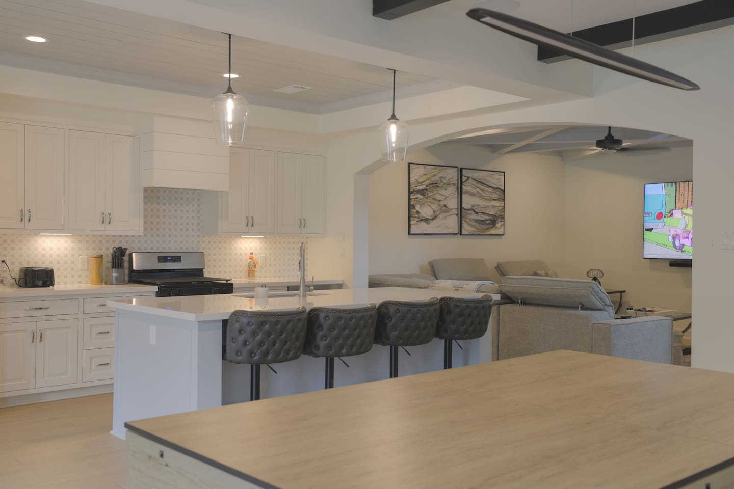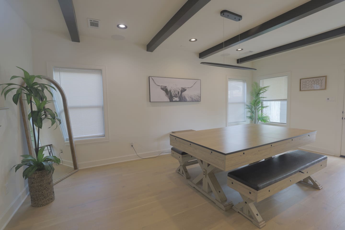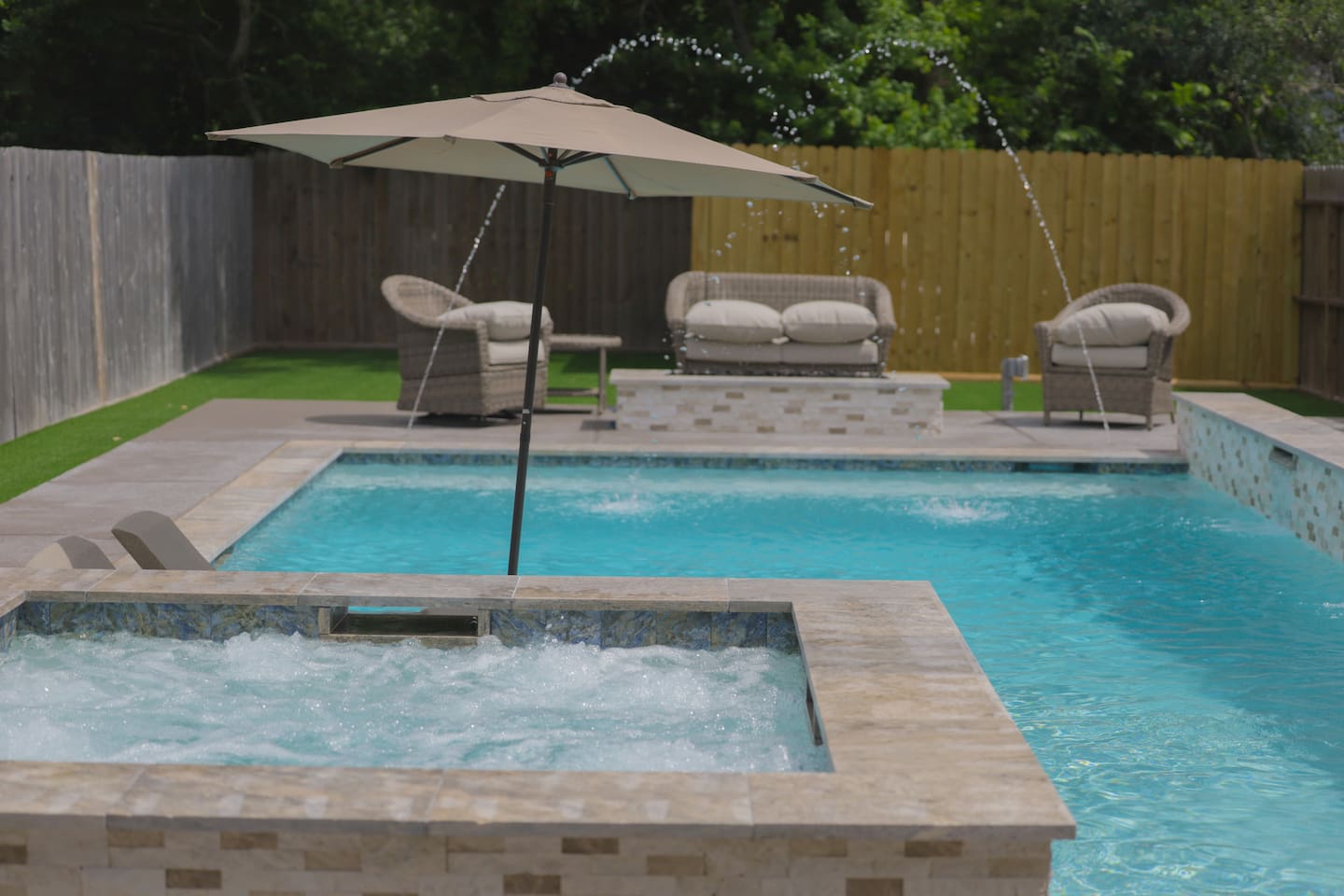 Bedrooms: Primary Suite: King Bed + Ensuite Bathroom (Separate Tub and Shower) Bedroom 2: Queen Bed Bedroom 3: Queen Bed Bedroom 4: Queen Bed + Ensuite Bathroom Kitchen & Living Room Fully equipped kitchen, open concept living area, and indoor dining for 10-ideal for gathering and relaxing. The Pool: Private Luxury pool surrounded by sun deck, hot tub, loungers. Water falls and ambient lighting make nighttime dips a staycation vibe. You are distance to: • NRG Stadium - 5.2 miles • TDECU Stadium - 4.7 miles • Museum of Fine Arts, Houston - 5.9 miles • Houston Museum of Natural Science - 5.9 miles • Children’s Museum Houston - 6 miles • Houston Zoo - 6.1 miles • Shell Energy Stadium - 7.9 miles • Rice Stadium - 8 miles • Toyota Center - 8.4 miles • George R. Brown Convention Center - 8.9 miles • Daikin Park (formerly Minute Maid Park) - 9.4 miles • Downtown Aquarium - 9.9 miles • The Galleria Mall - 12.3 miles • The Music Box Theater - 21.3 miles • NASA Space Center Houston - 25.4 miles AIRPORTS: • William P. Hobby Airport - 6.6 miles • George Bush Intercontinental Airport - 26.5 miles